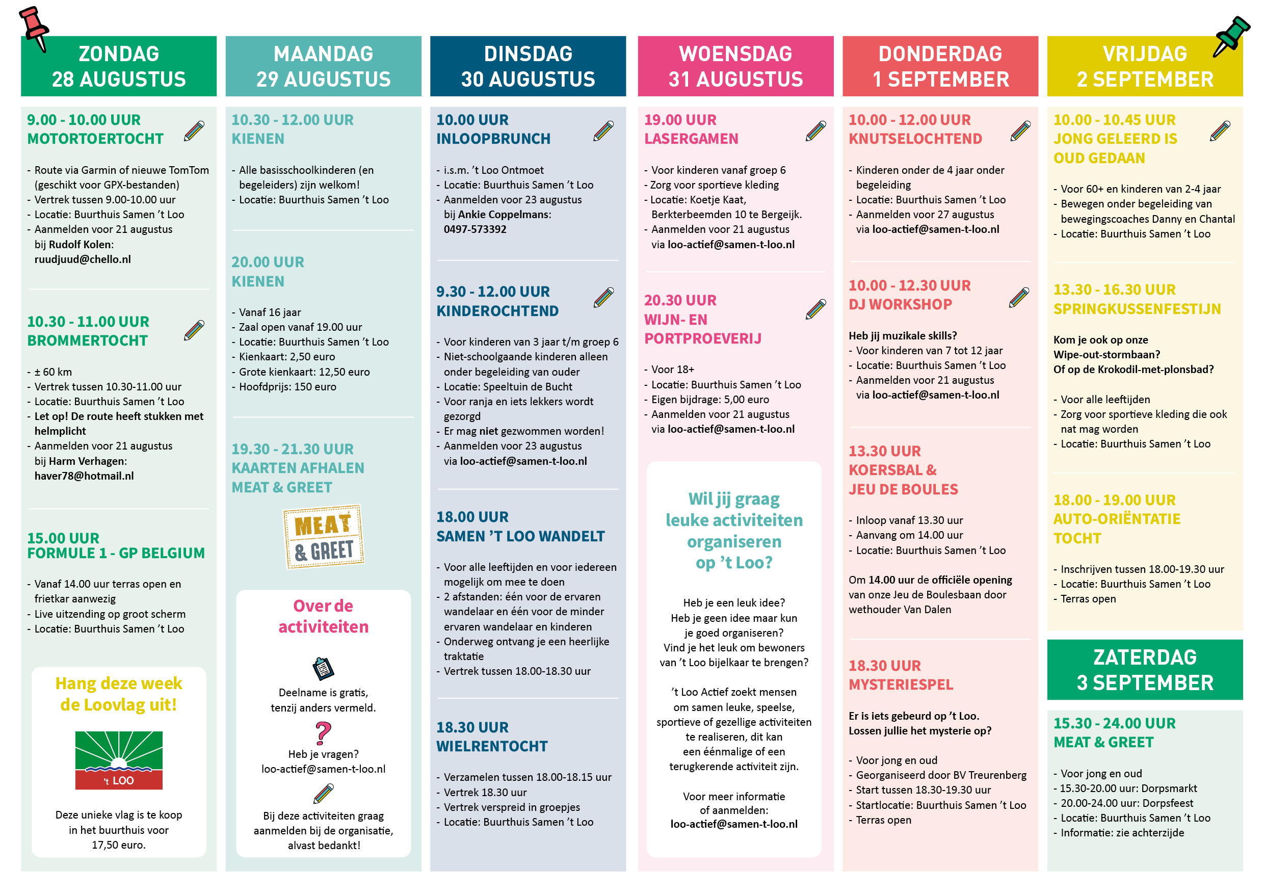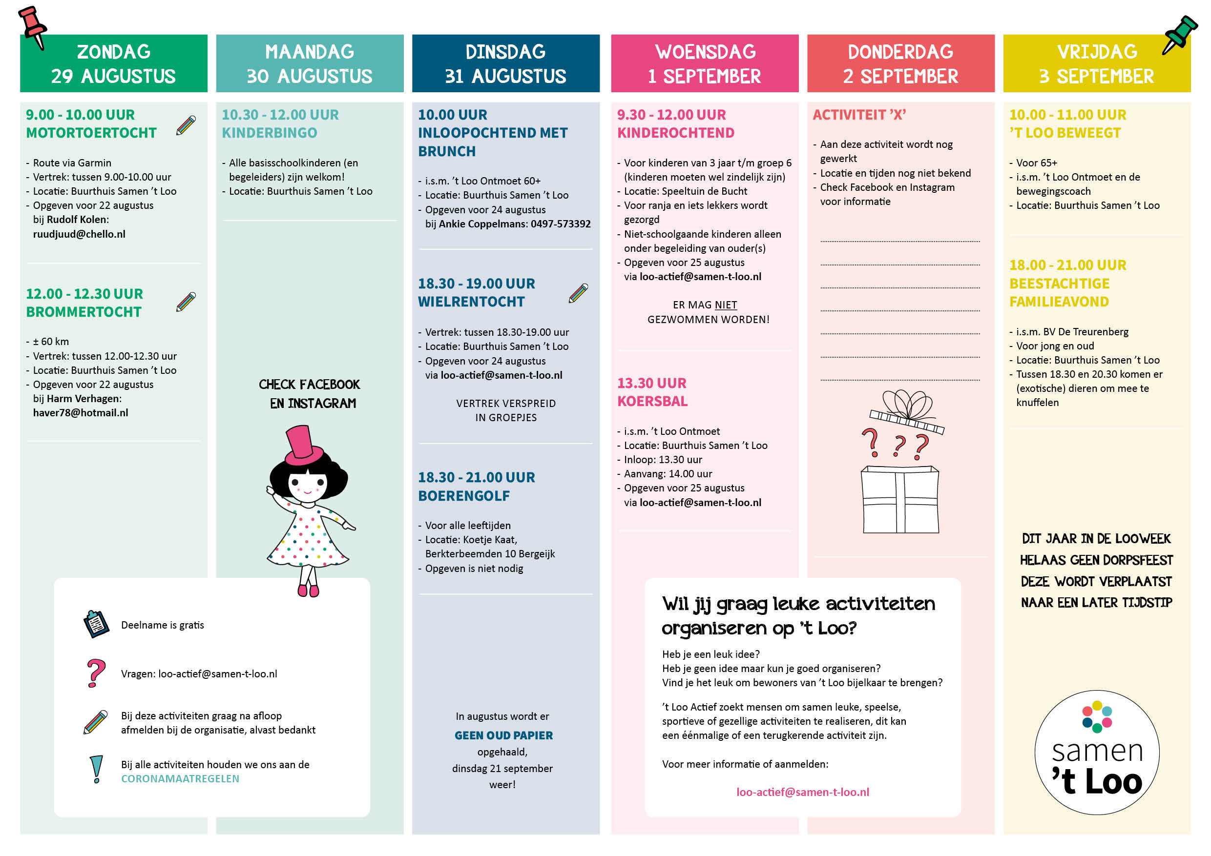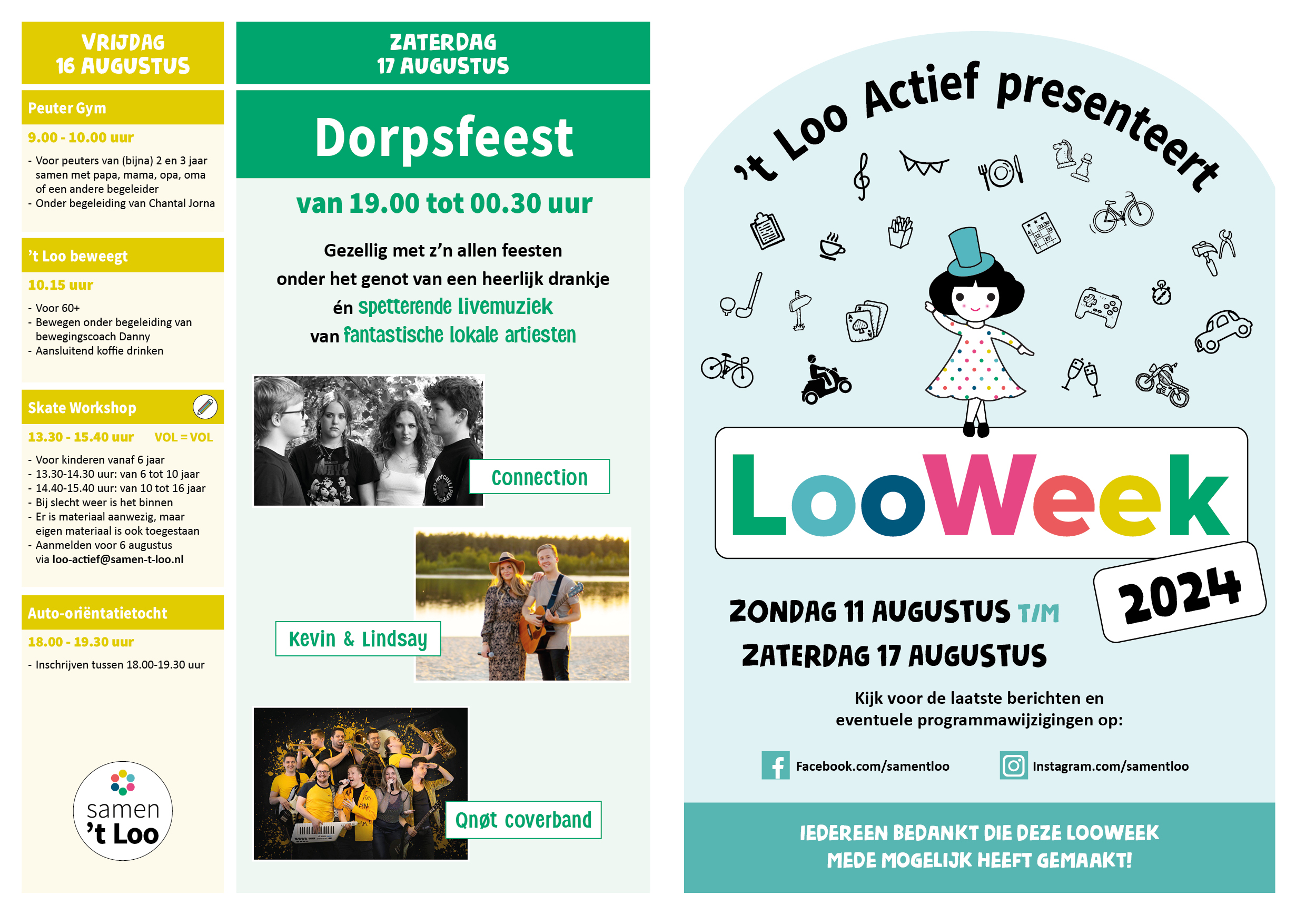 YES! Het programma is bekend en valt één dezer dagen bij alle inwoners van 't Loo in de bus/op de mat. Check hieronder alvast wat er allemaal voor leuks te doen is en geef je op waar nodig!