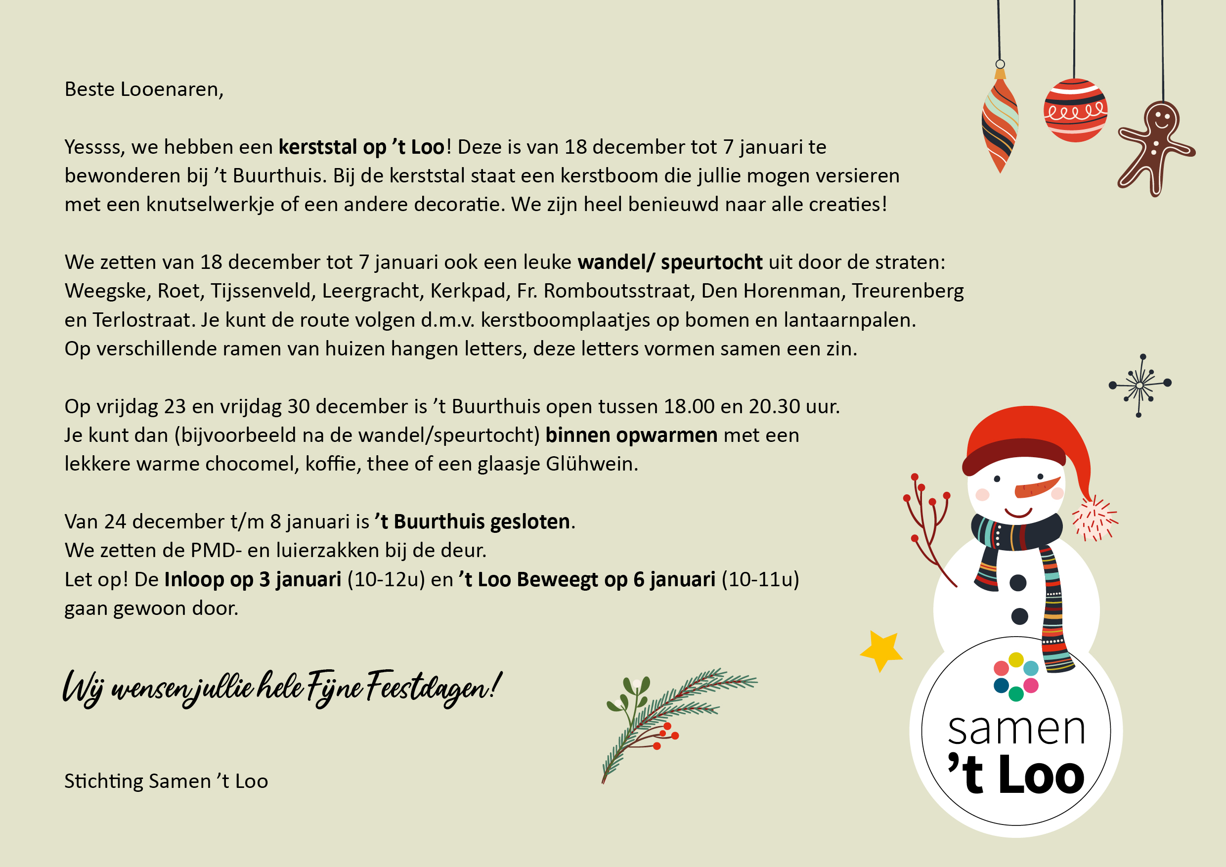 De website is zorgvuldig opgesteld, maar mocht u toch een onjuistheid tegenkomen of informatie missen dan kunt u ons dat laten weten: info@samen-t-loo.nl