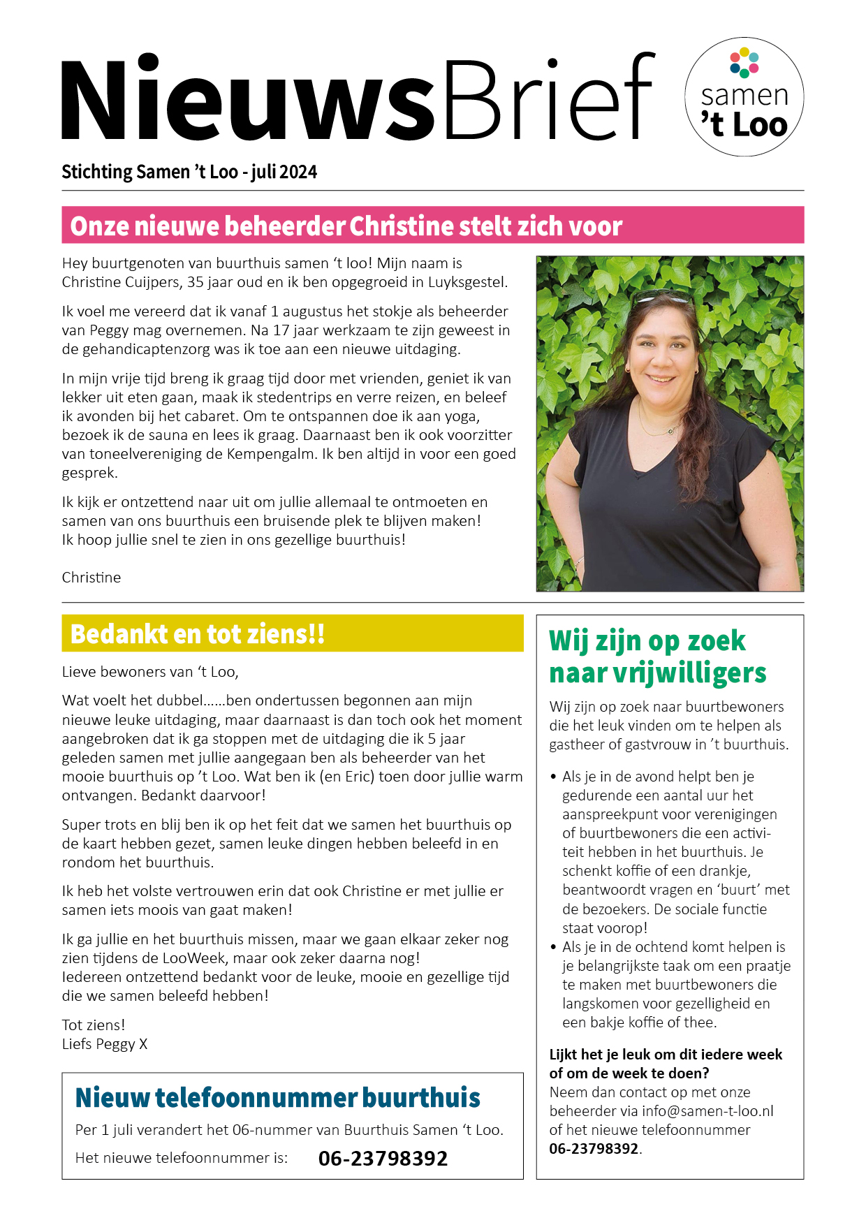 Goed nieuws: we hebben een nieuwe beheerder voor ons Buurthuis!